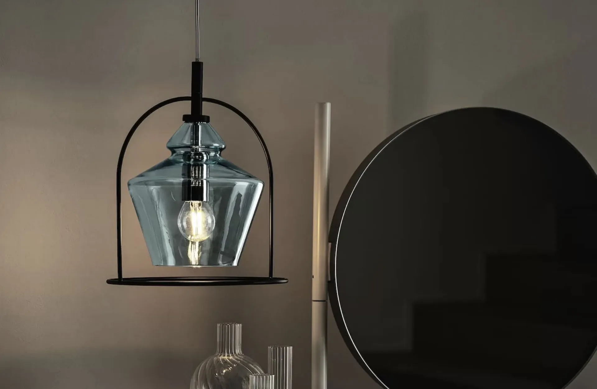 Illuminazione design e lampade a sospensione: scopri di più sulla lampada Swing in vetro che ti consigliamo.