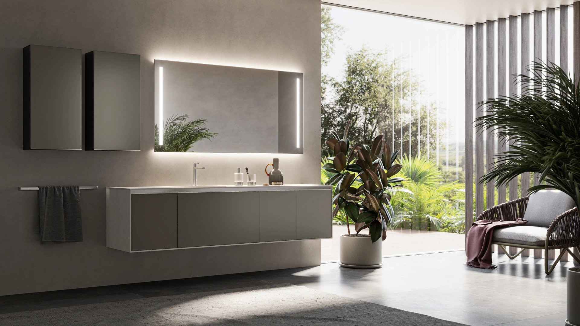 mobili bagno sospesi Corretto 03 di Inda: scopri l'Arredo Bagno in laccato opaco moderno e arreda il tuo bagno.