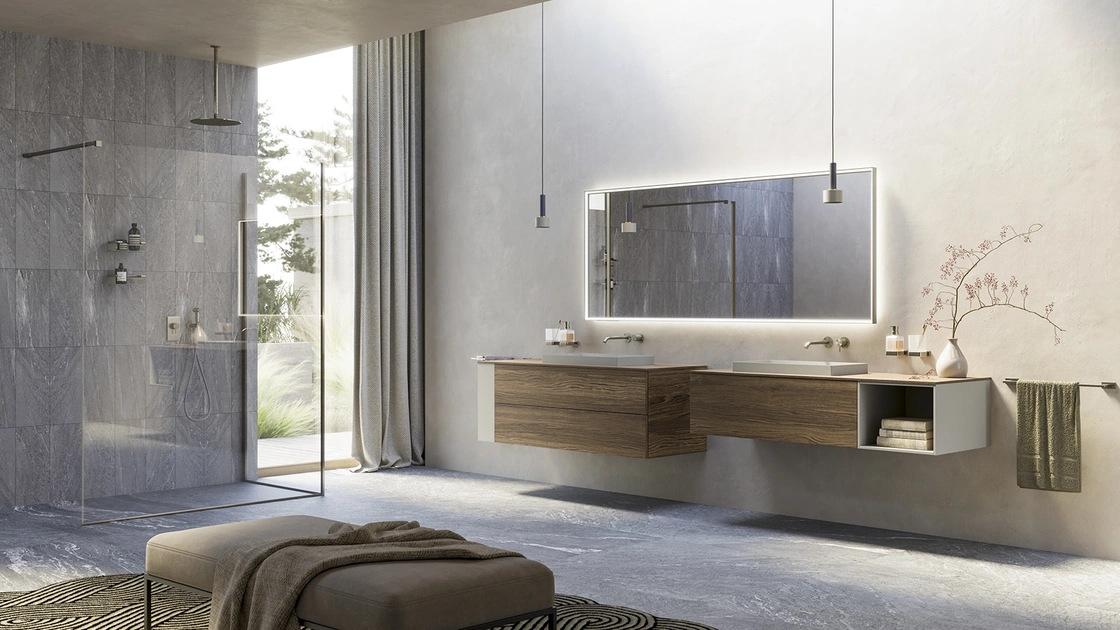 mobili bagno sospesi Push Open 01 di Inda: scopri l'Arredo Bagno in HPL moderno e arreda il tuo bagno.
