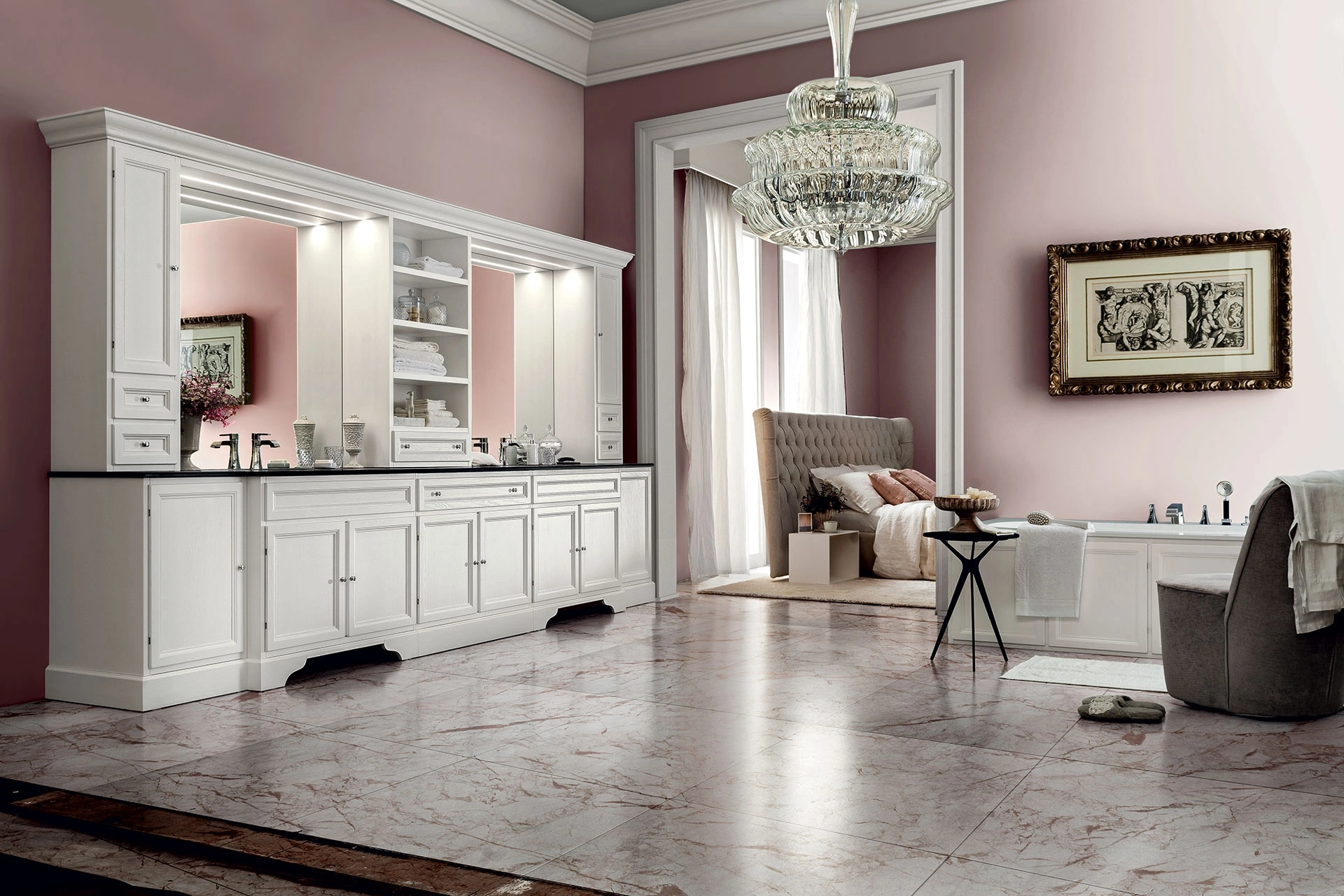 mobili bagno a terra in laccato opaco del brand Cerasa: clicca e scopri l'arredo bagno classico Paestum 00 per il tuo bagno.