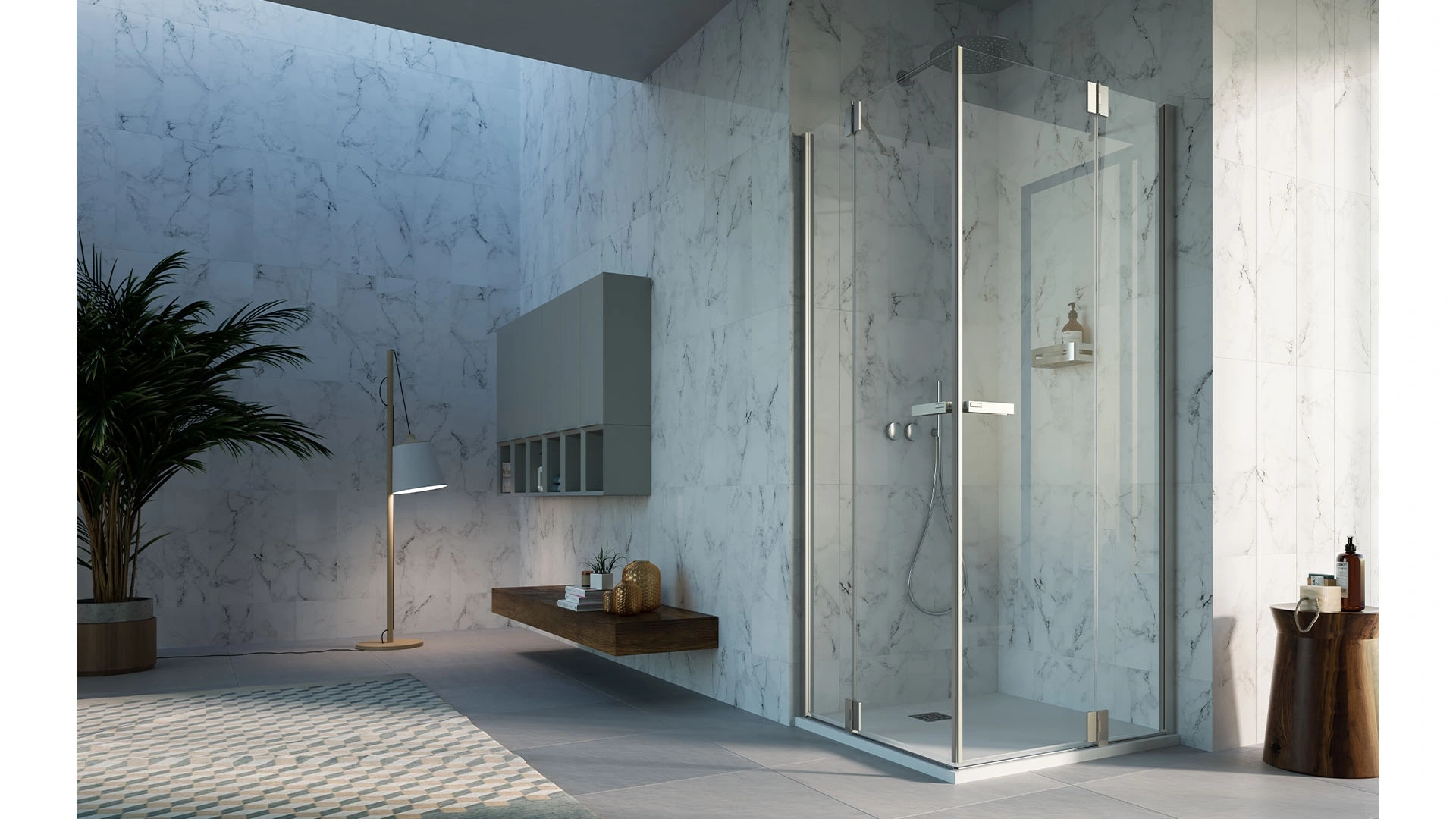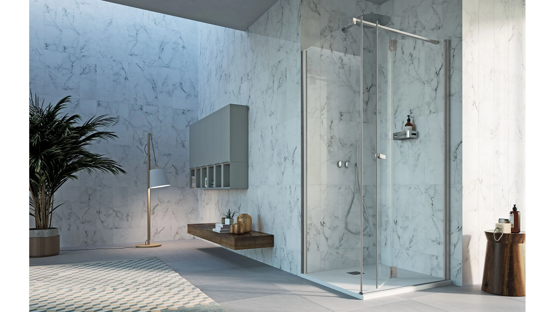 box doccia in vetro del brand Inda: clicca e scopri l'arredo bagno design Praia Design Battente per il bagno di casa.