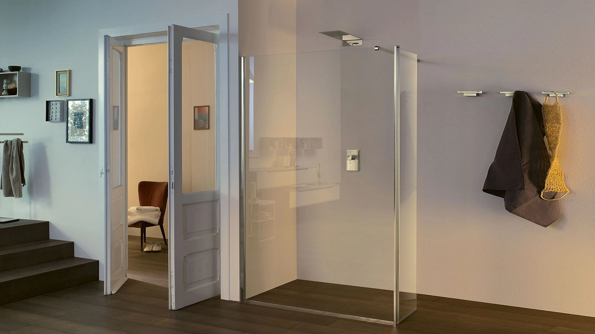 box doccia in vetro dell'azienda Inda: clicca e scopri l'arredo bagno moderno Walk In Deflettore per il tuo bagno.