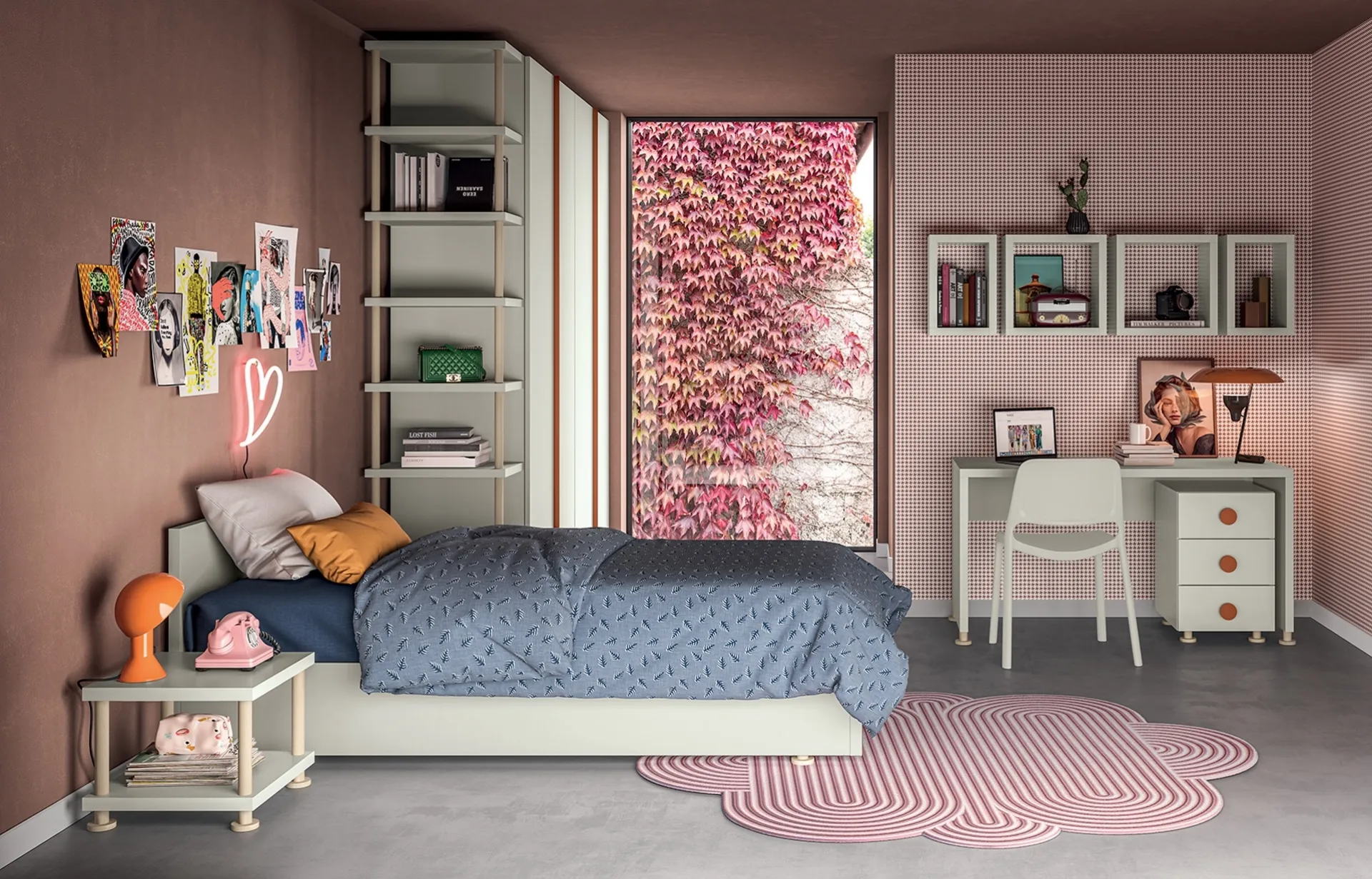 Camerette componibili per ragazzi: scopri il modello in melaminico Ribe 02 di Erba per stanzette moderne.