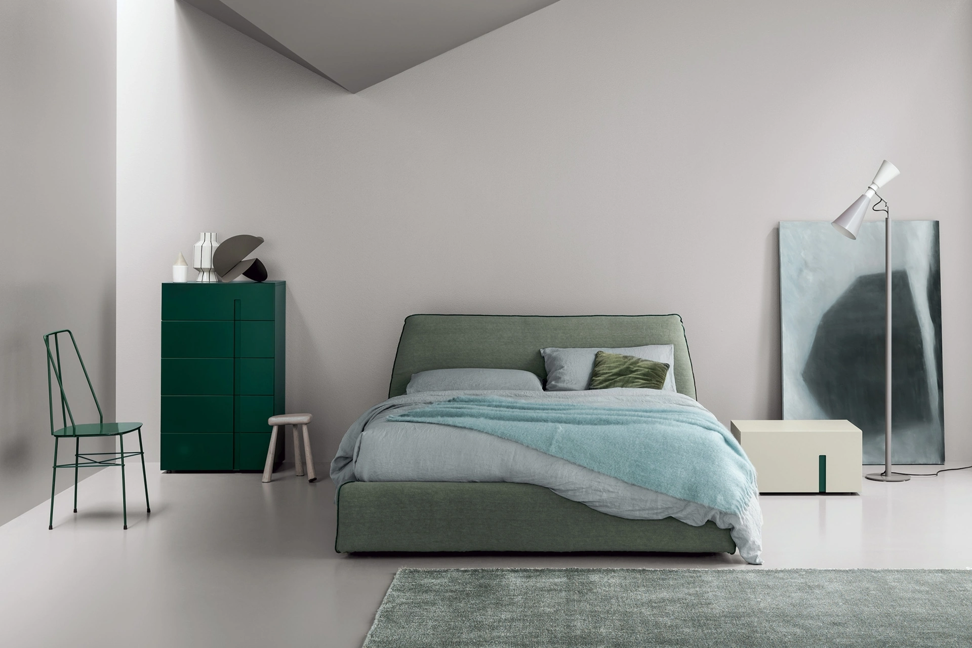 Vuoi progettare la zona notte con Comodini e cassettiere di Kristalia? Ecco qui il modello Grafico Gruppo Notte in laccato opaco per spazi moderni.
