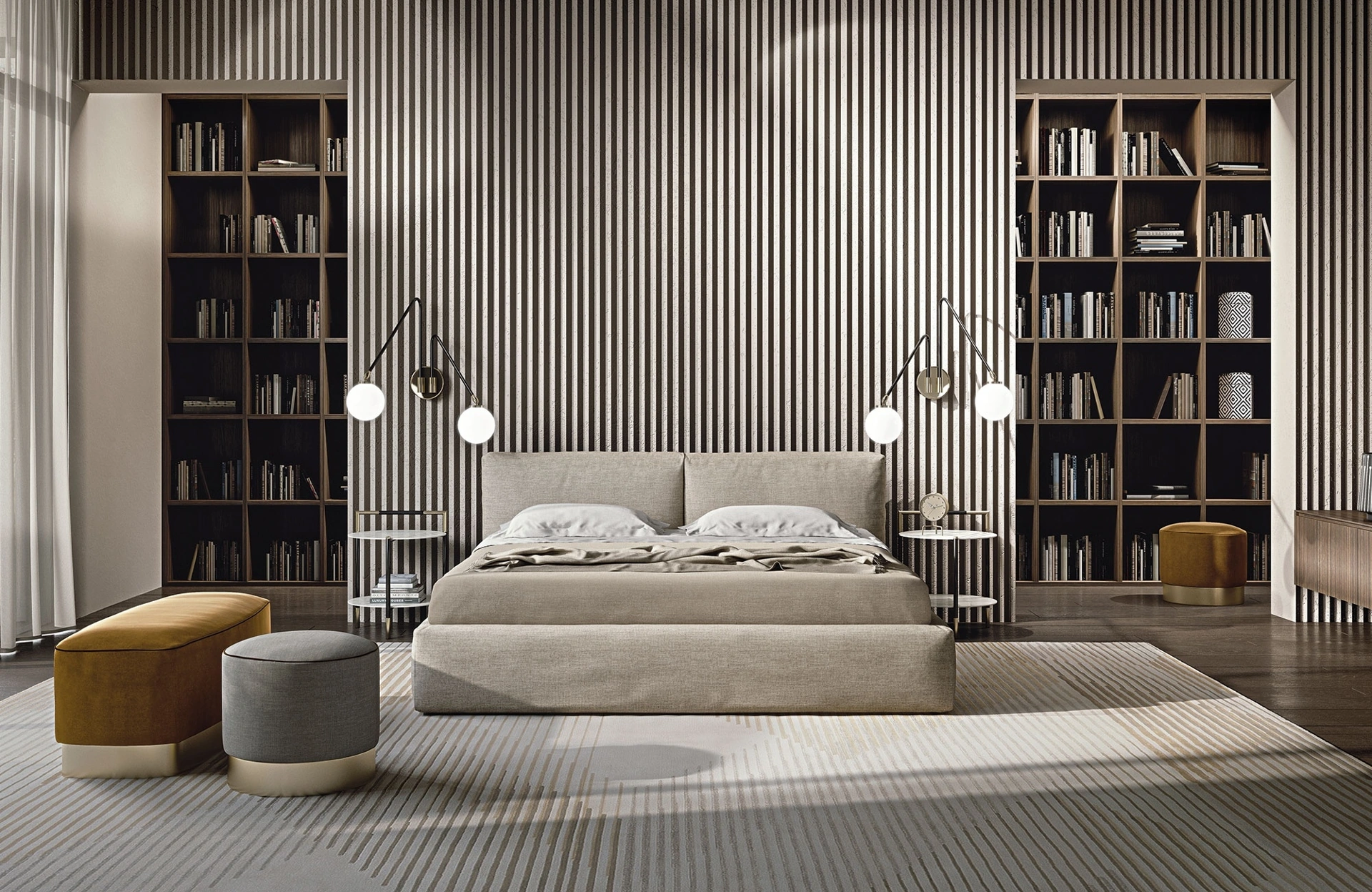 Il letto Cooper in tessuto, tra i modelli con contenitore matrimoniali moderni di Frigerio, è pensato per garantirti il sonno più profondo.