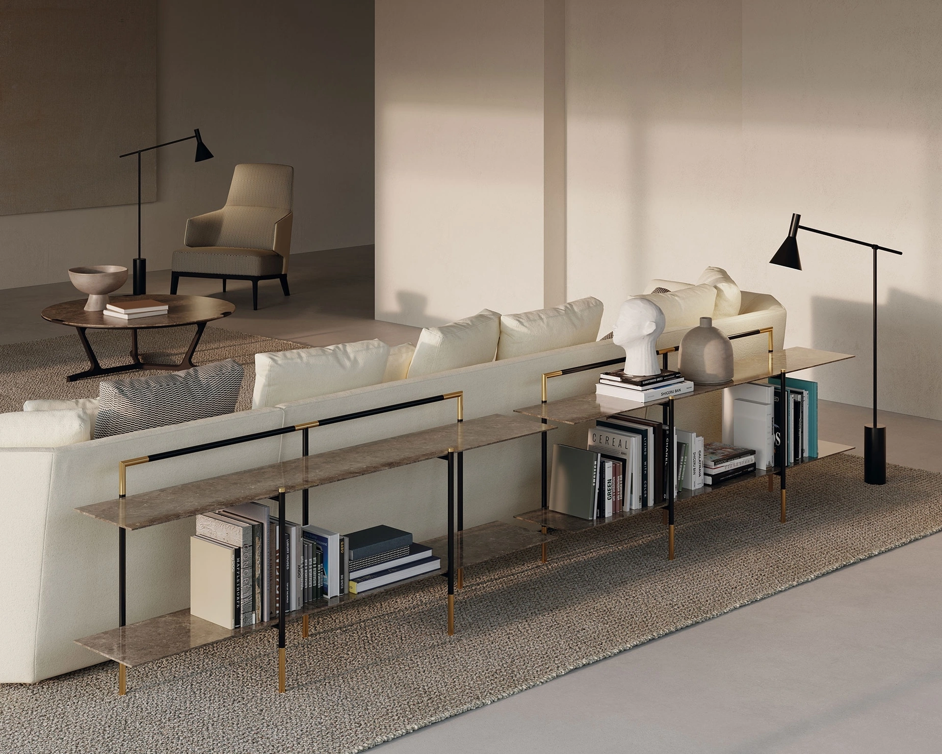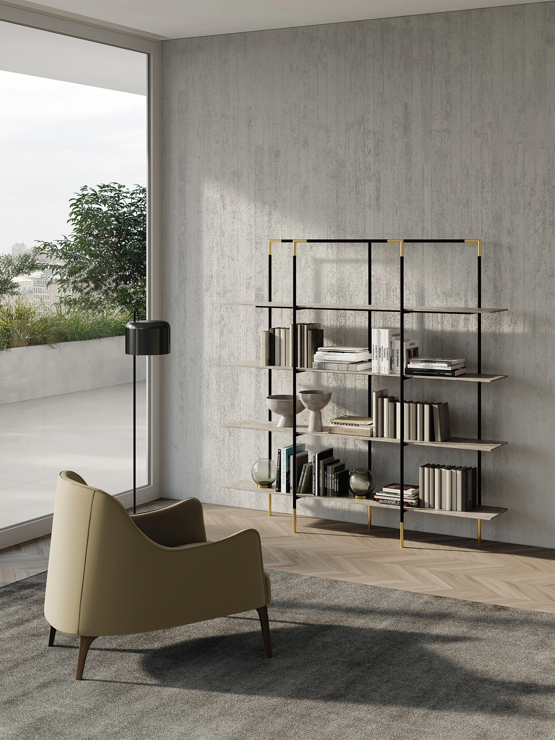Progettare il living è facile: scegli l'adeguata tipologia di libreria con cui arredare l'ambiente e valorizzare il look dello spazio. La Libreria freestanding Kevin di Frigerio qui presente è la scelta ideale per uno spazio dinamico e operativo nonché bello da vedere. Dare valore al proprio living è possibile: contattaci per avere ulteriori info per il modello di mobile soggiorno nella fotografia e valorizza la tua abitazione con la qualità assicurata dal rinomato brand. Se cerchi unmobile soggiorno in metallo, che sia solida, funzionale, piacevole e elegante, dare uno sguardo alle nostre soluzioni moderne ti aiuterà a trovare il modello che fa al caso tuo.