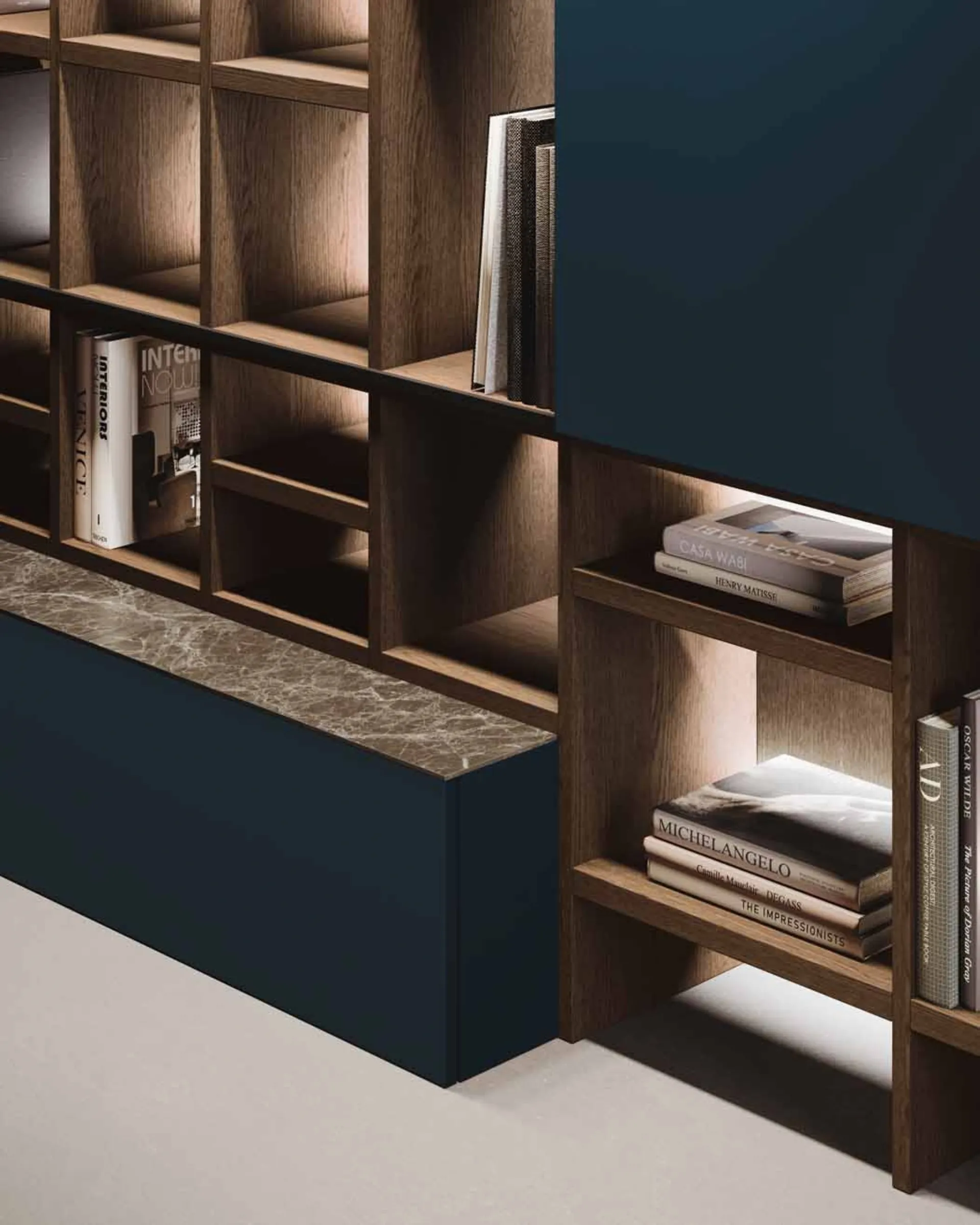 Librerie componibili iper funzionali per stanze moderne: scopri di più sul modello Libreria laccata Blu della marca Guzzini & Fontana!
