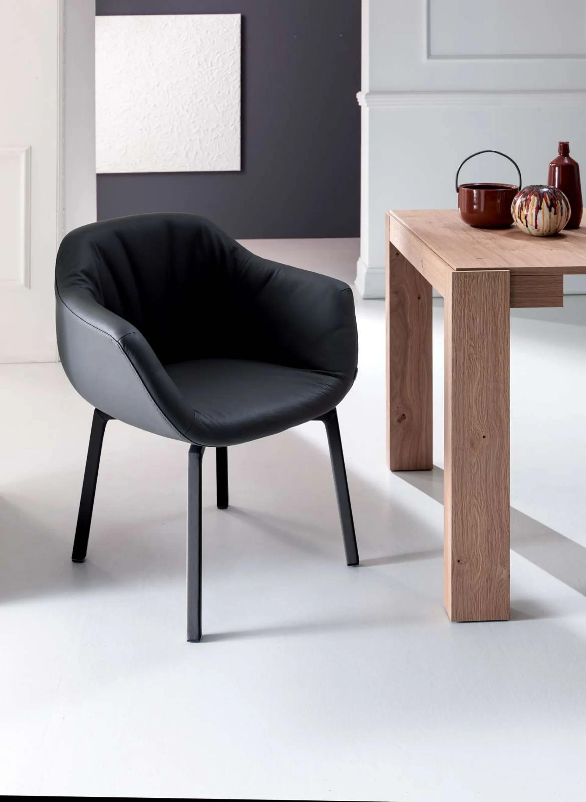 Una sedia in pelle come quella qui visibile arreda un living o una cucina di alto contenuto estetico, ultimando gli spazi arricchendone l'estetica. Tra le migliori marche disponibili nel nostro negozio di Arredamento Casa potrai trovare le Sedie fisse da pranzo più esclusive in commercio. Le sedie moderne, sia in legno che imbottite, sono arredi complessi, caratterizzati da una scelta praticamente infinita di tonalità, linee e pattern. Oltre a assolvere a una funzione imprescindibile, questi pezzi di arredo possono enfatizzare un interno anche monocorde e privo di accessori. Nel nostro showroom presentiamo esclusivi mobili e oggetti accessori, tra cui troverai sicuramente la soluzione che fa per te. Contattaci e scopri di più sul modello di Sedia con braccioli Nelson di Ozzio presente in foto.