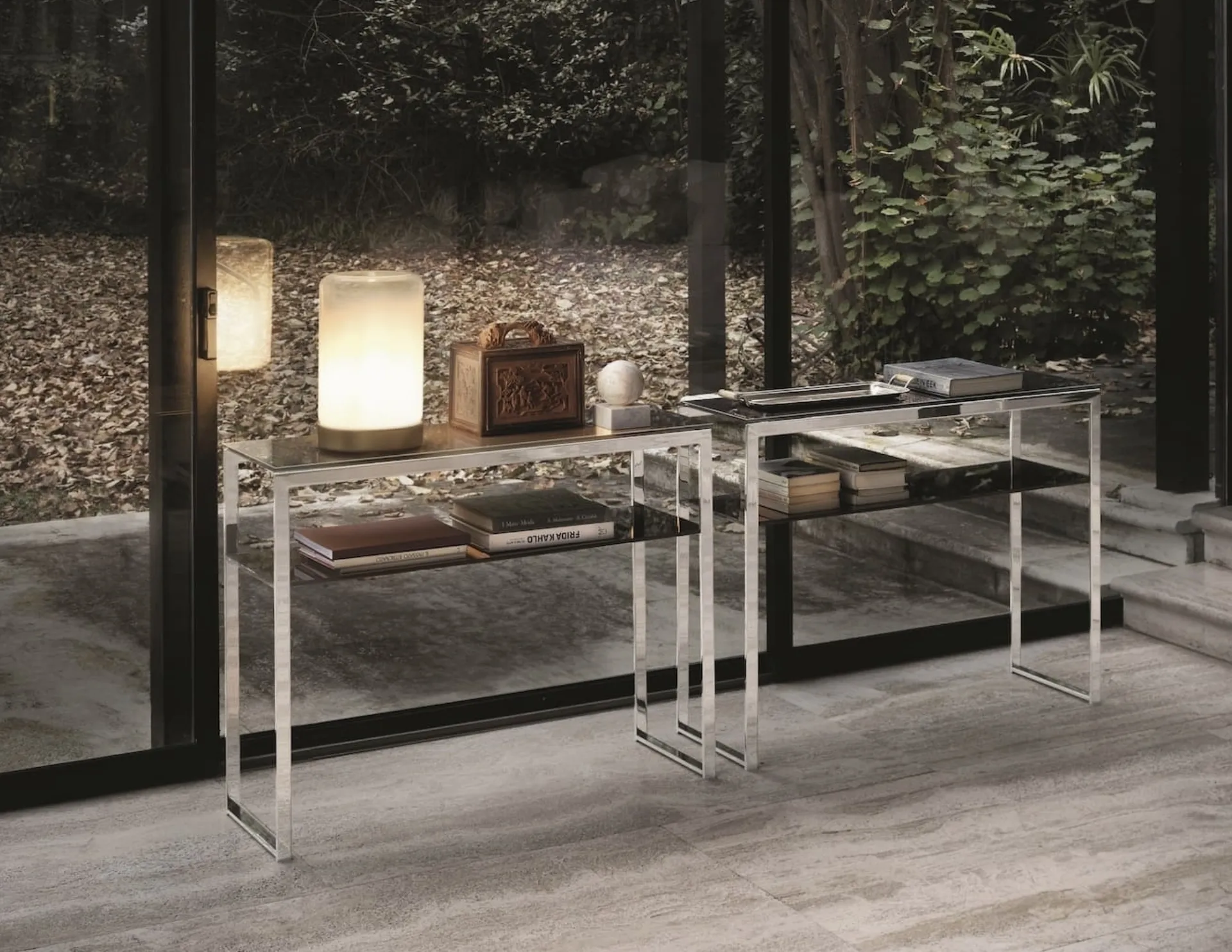 Se vuoi tavoli consolle moderni, ti offriamo il modello da pranzo in vetro Hip Hop Consolle del marchio Bontempi.