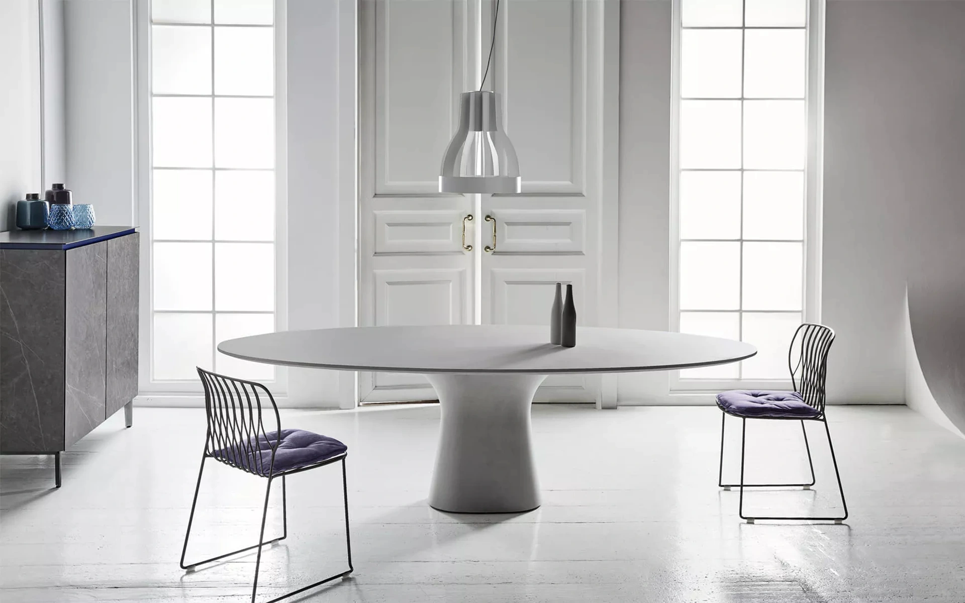 Vuoi impreziosire spazi design? Ottieni informazioni sui tavoli design fissi: il modello da pranzo Podium Cemento ti attende.