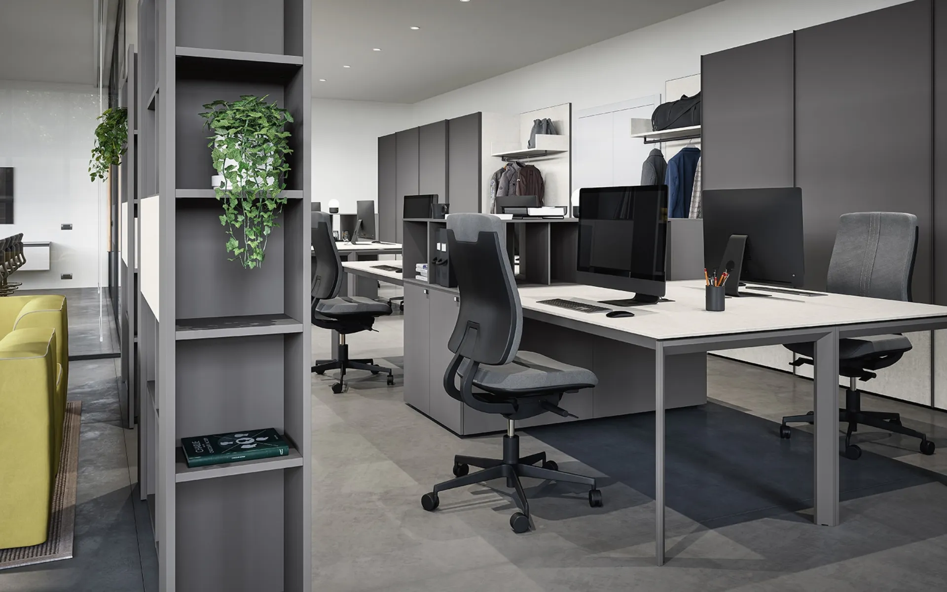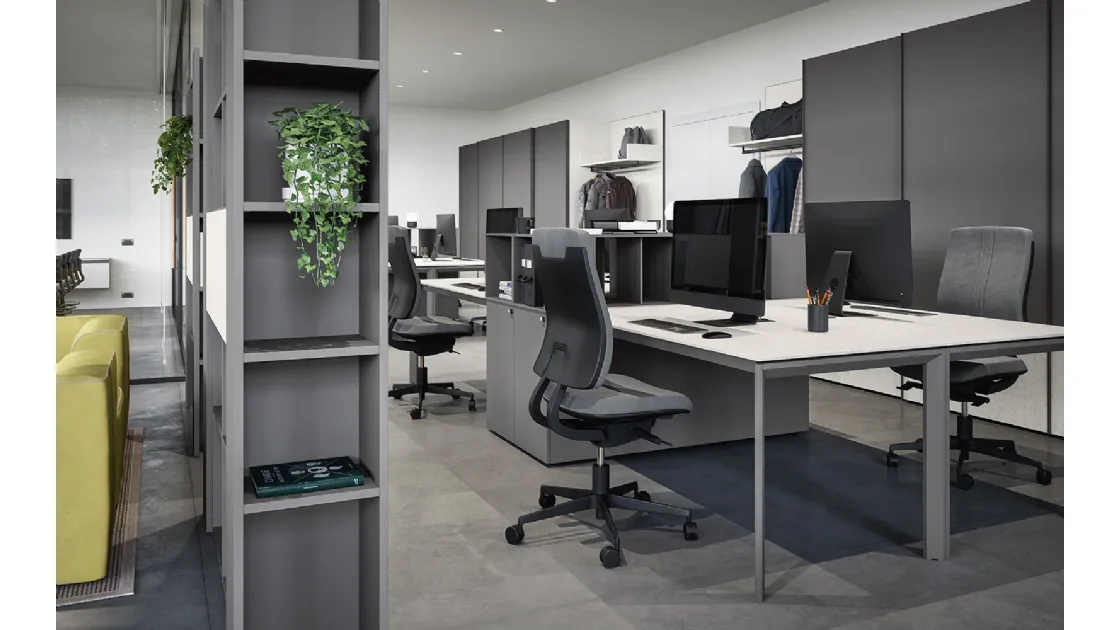 In showroom puoi visionare in prima persona le più belle soluzioni arredative di Arredo Ufficio in melaminico, sempre di ottima qualità e ideali per locali di ogni tipo. Ammobiliare attentamente l'ambiente lavorativo è di primaria importanza per offrire il comfort per chi svolge il lavoro e l’accoglienza per i clienti: il nostro showroom ti aspetta. Scrivania Operativa 06B in melaminico e metallo di Cinquanta3: è uno dei migliori esempi di mobili per gli ambienti lavorativi funzionali e belli da vedere del conosciuto brand. Vieni a scoprire nel nostro negozio molteplici modelli di scrivanie operative di qualità eccellente, sempre realizzati in materiali durevoli e resistenti nel tempo. Per il tuo Arredo Ufficio prendono un ruolo di centrale importanza le composizioni arredative con scrivanie operative in melaminico, studiate per attrezzare lo spazio.
